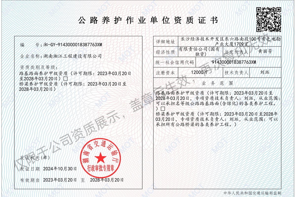 公路養(yǎng)護(hù)資質(zhì)證書