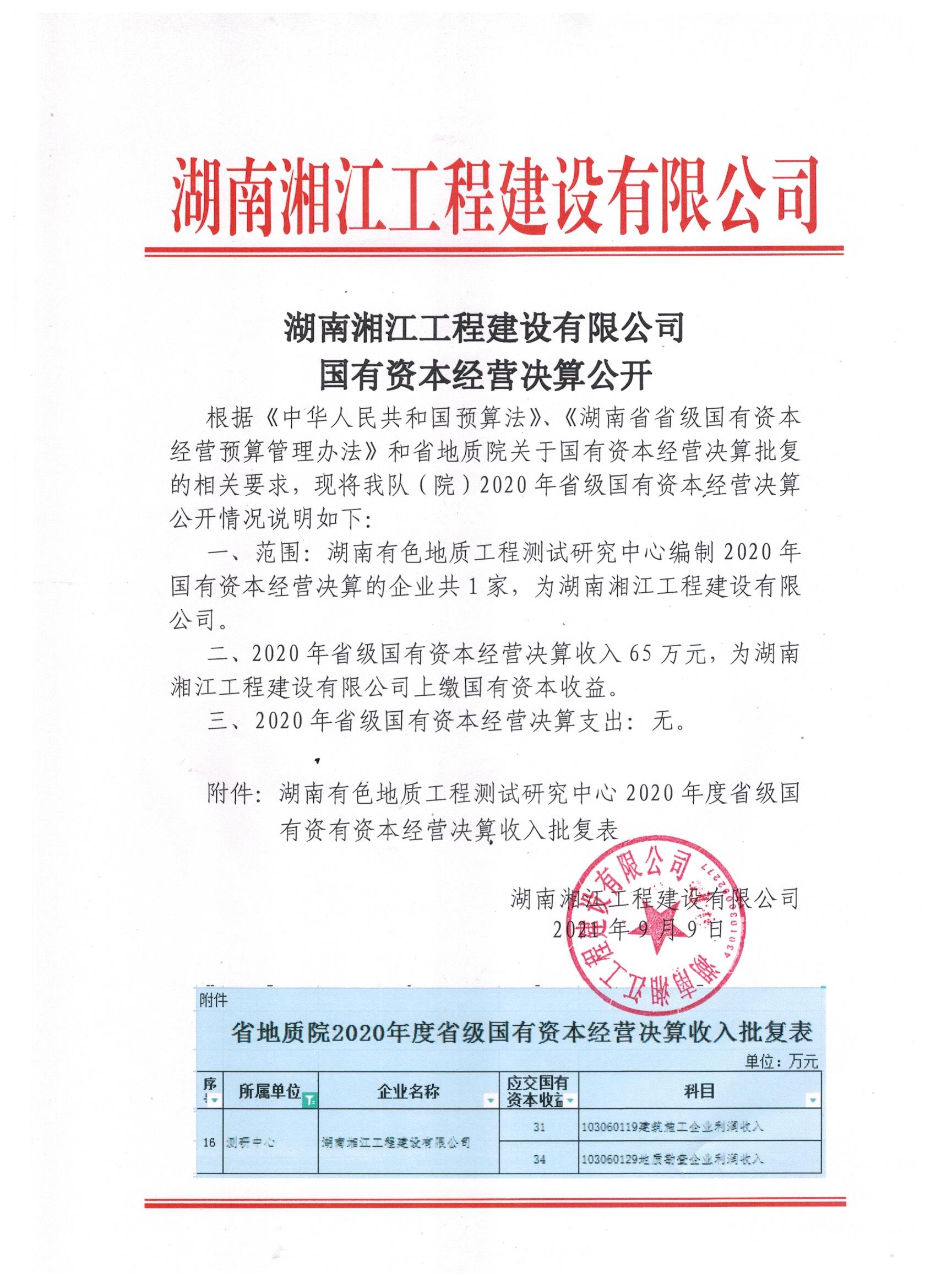 湖南湘江工程建設(shè)有限公司國有資本經(jīng)營決算公開